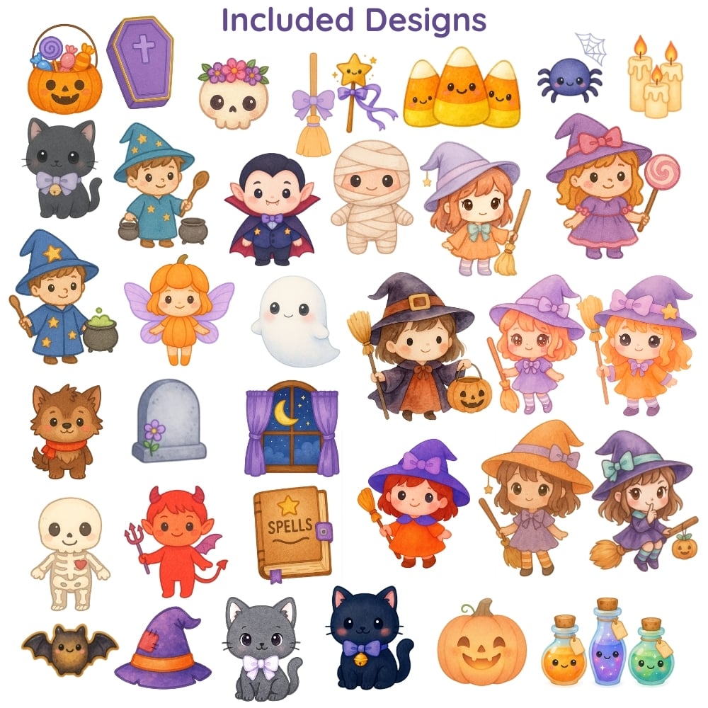 Click Buy Now and start crafting with this ultimate kawaii Halloween clipart bundle. Bring spooky-sweet vibes to your digital and printable projects instantly!