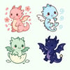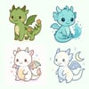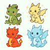Hand-drawn pastel kawaii dragons