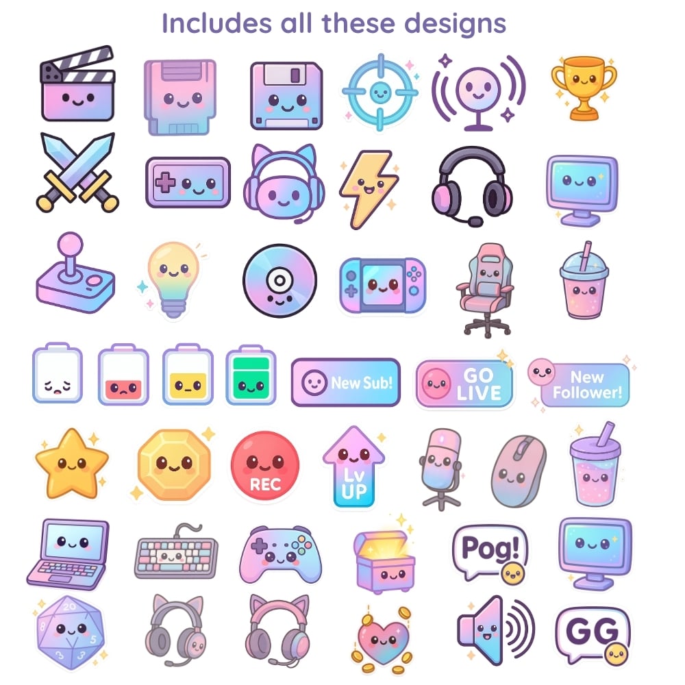 ✨ 44 Kawaii Streamer Stickers Bundle ✨